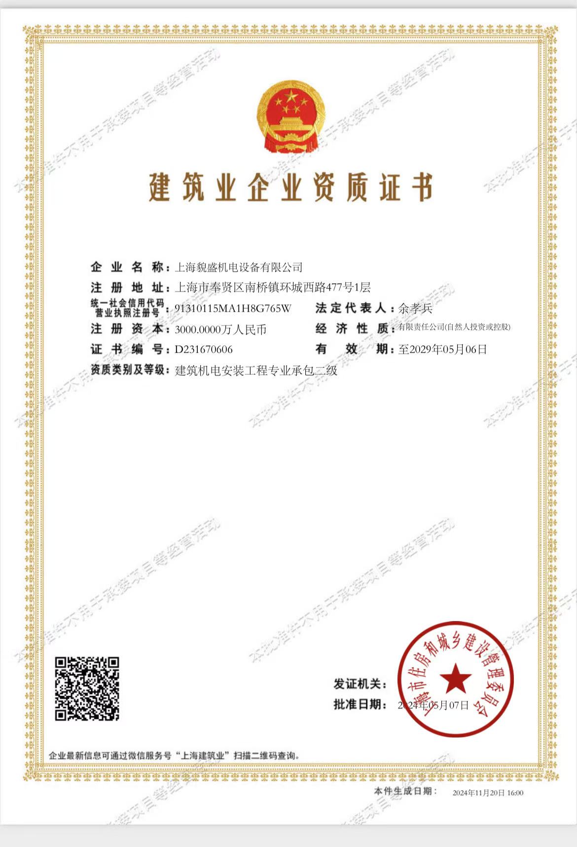 机电工程专业承包二级资质